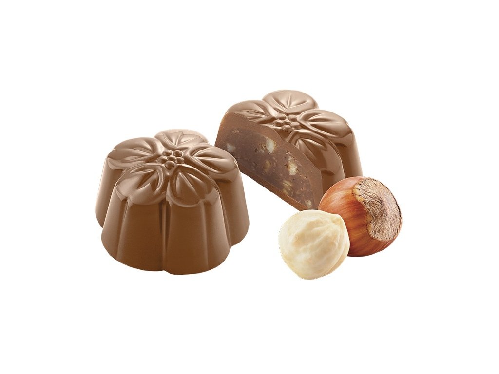 Bonbóny ve tvaru květiny, mléčná čokoláda s lískooříškovou náplní