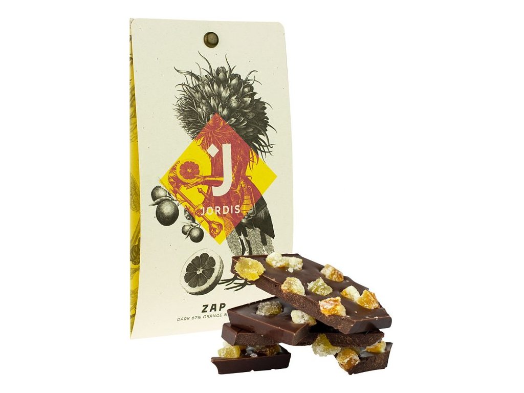 Pomeranč a zázvor, to je známá dvojka. A s čokoládou si oba také rozumí. Na tuto čokoládu použili v Jordi's kakaové boby z Jamajky, Grenady a Mexika. S pomeranči z Karibiku a zázvorem z Asie je to pěkná mezinárodní party. Co se sešla v jedné manufaktuře u nás v Hradci.