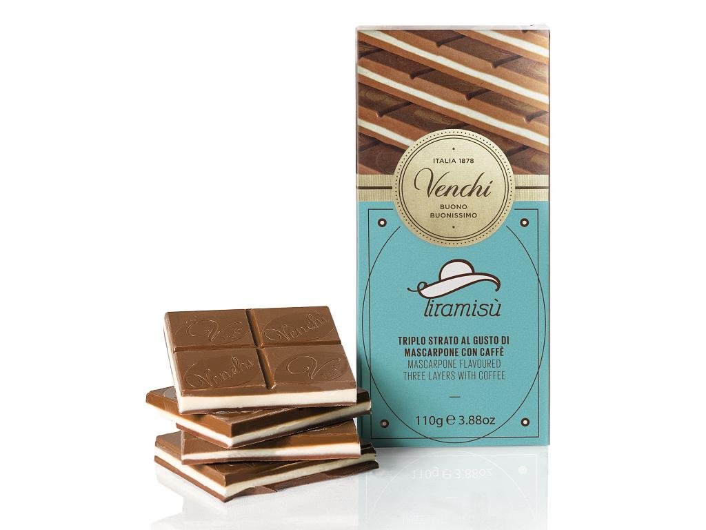 Tabulka ze tří vrstev čokolády připomínající ikonický italský dezert Tiramisu. Káva, mascarpone a kakao v jednom dokonalém soustu. Nejlépe si ji vychutnáte jak jinak než ... s kávou.