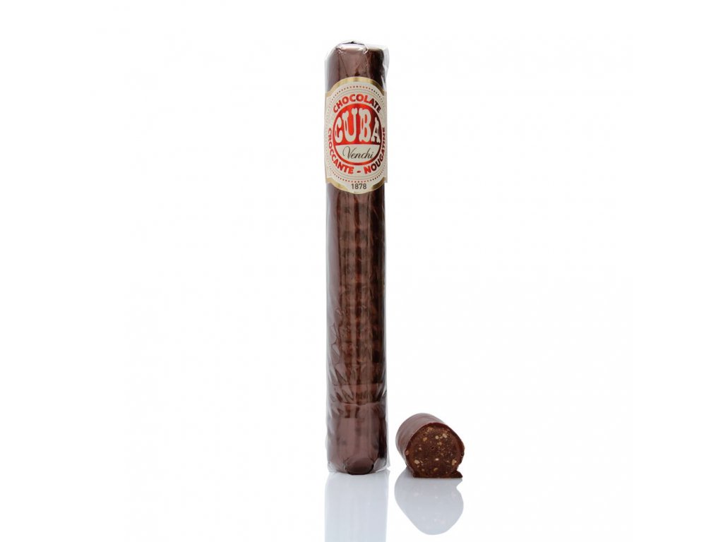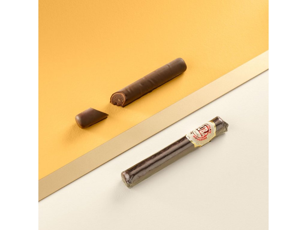 Luxusní čokoládová tyčinka z vrstvy tmavé a vrstvy mléčné čokolády s bohatou karamelovou náplní.