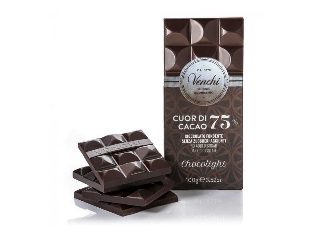 Venchi hořká čokoláda 75 % cocoa BEZ CUKRU 100g