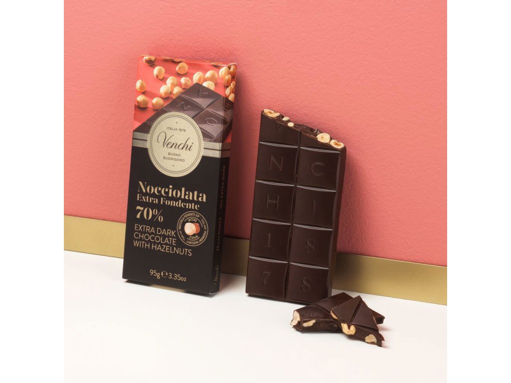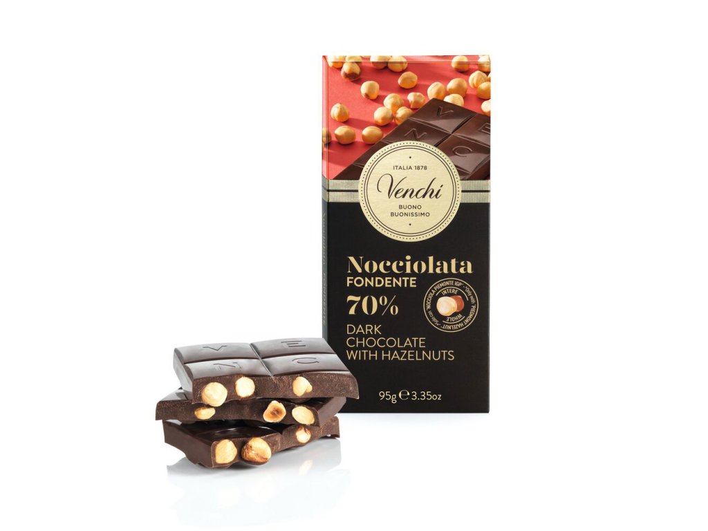 Venchi hořká čokoláda 70% s lískovými oříšky 95g