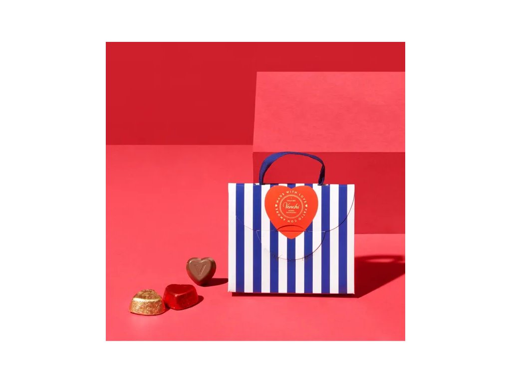 Rozjasni den někomu, koho máš rád, s touto roztomilou mini taškou plnou srdíčkových pralinek! Venchi mistrovsky kombinují jemnost mléčné čokolády s nádechem toffee a karamelu a bohatou chuť 75 % extra tmavé čokolády, která potěší i odvážné čokoholiky. Každé malé srdíčko je jako malý polibek štěstí – ideální jako valentýnské překvapení, sladký doplněk ke kávě nebo důvod se trochu rozmazlit.